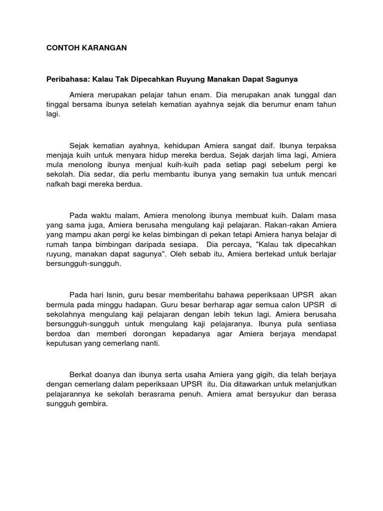 Koleksi Contoh Karangan Bahasa Melayu BM UPSR Sekolah Rendah K. Cara menjawab soalan novel kertas 1. Jangan biarkan keluarga kita menanti dalam tangisan.